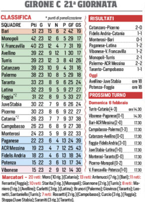L'edizione odierna de "Il Corriere dello Sport" si sofferma sul programma di serie C e la classifica aggiornata.
