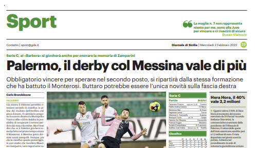L'edizione odierna de "Il Giornale di Sicilia" si sofferma sul derby di oggi contro il Messina. Già stasera il Palermo...