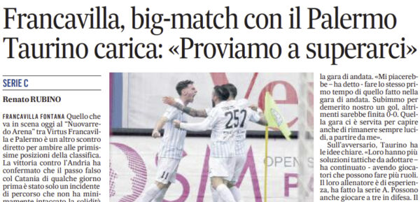 L'edizione odierna de "La Gazzetta dello Sport" si sofferma sulla gara di oggi tra Virtus Francavilla e Palermo.