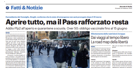 L'edizione odierna de "Il Giornale di Sicilia" si sofferma sulla decisione del governo di non prorogare lo stato d'emergenza. Lo...