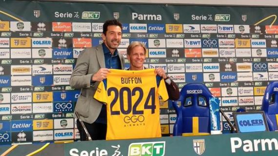 In conferenza stampa odierna, il presidente del Parma Kyle Krause, che annuncia il rinnovo del portiere gialloblù Gianluigi Buffon. Ecco...