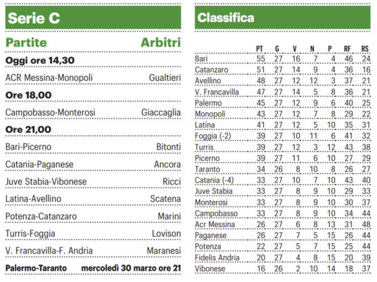 L'edizione odierna de "Il Giornale di Sicilia" si sofferma sul programma di serie C di oggi e la classifica aggiornata.