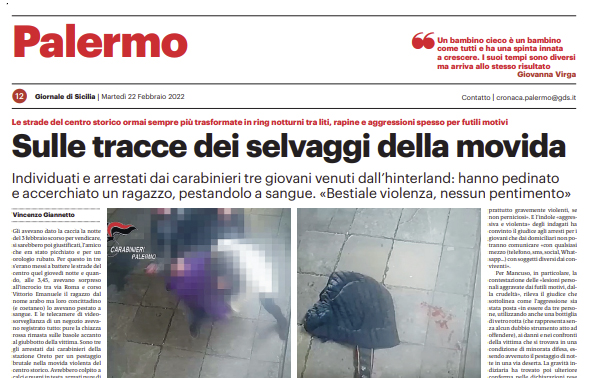 L'edizione odierna de "Il Giornale di Sicilia" si sofferma sulla movida selvaggia a Palermo. Gli avevano dato la caccia la...