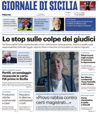 L'edizione odierna de "Il Giornale di Sicilia" si sofferma su vari temi in prima pagina. Via libera della Corte costituzionale...