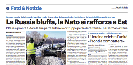 L'edizione odierna de "Il Giornale di Sicilia" si sofferma sulla situazione tesa tra Russia e Ucraina. È una guerra per...