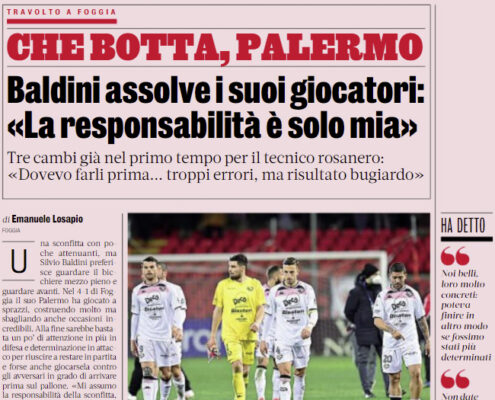 L’edizione odierna de “La Gazzetta dello Sport” si sofferma sulla sconfitta di ieri del Palermo contro il Foggia. Una sconfitta...