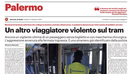 L'edizione odierna de "Il Giornale di Sicilia" si sofferma sull'ennesima aggressione sui tram di Palermo. Per il tram che passa...