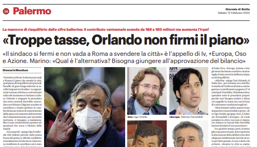 L'edizione odierna de "Il Giornale di Sicilia" si sofferma sulle troppe tasse del Comune di Palermo. «Il sindaco si fermi....