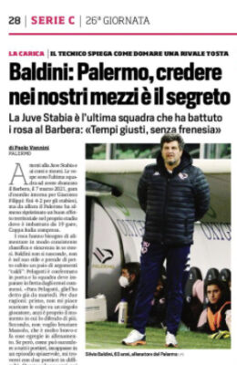 L'edizione odierna de "Il Corriere dello Sport" si sofferma sulle parole di Baldini in conferenza stampa. Attenti alla Juve Stabia...