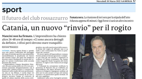 L'edizione odierna de "La Sicilia" si sofferma sulla firma del rogito notarile ancora non arrivata . L’ennesimo slittamento è stato...