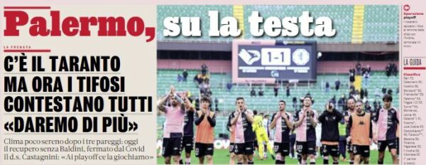 L'edizione odierna de "La Gazzetta dello Sport" si soffermano su Palermo-Taranto e i tifosi che contestano la squadra, ma non...