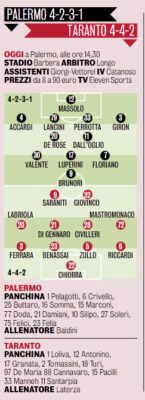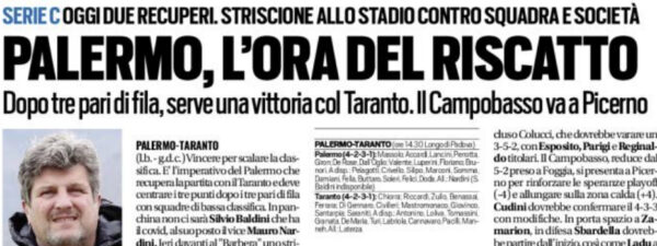 L'edizione odierna de "La Gazzetta dello Sport" si sofferma sulle probabili formazioni del match tra Palermo e Taranto.
