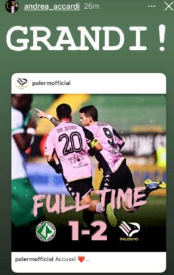 Attraverso il proprio profilo Instagram Andrea Accardi ha esultato dopo la vittoria del Palermo in quel di Avellino. Ecco in...