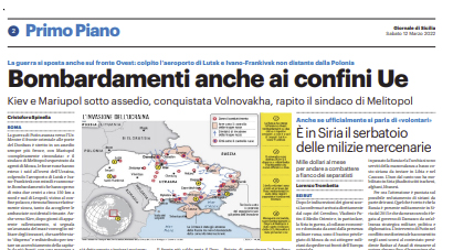 L'edizione odierna de "Il Giornale di Sicilia" si sofferma sui bombardamenti ai confini dell'Unione Europea. La guerra di Putin avanza...