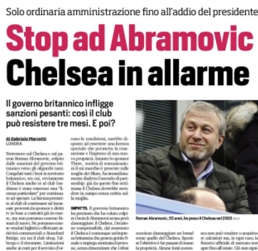 L'edizione odierna de "Il Corriere dello Sport" si sofferma sul Chelsea di Abtamovich. Terremoto sul Chelsea e sul patron Roman...