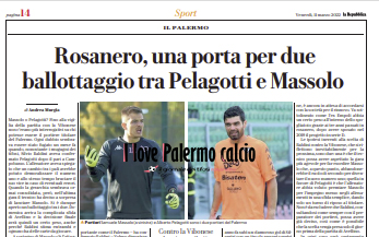 L'edizione odierna de "La Repubblica" si sofferma sul ballottaggio della porta del Palermo tra Pelagotti e Massolo. Massolo o Pelagotti?...