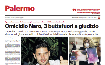 L'edizione odierna de "Il Giornale di Sicilia" si sofferma in merito all'omicidio di Aldo Naro. Il papà, la mamma e...