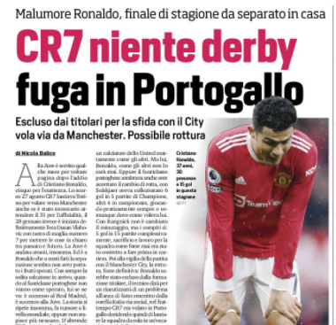 Corriere dello Sport: “CR7 niente derby fuga in Portogallo. Possibile rottura”