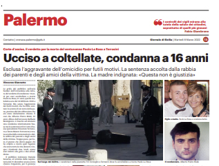 L'edizione odierna de "Il Giornale di Sicilia" si sofferma su una condanna a 16 anni per aver accoltellato un uomo....