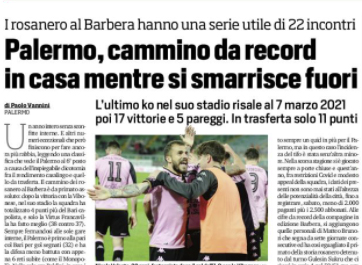 L'edizione odierna de "Il Corriere dello Sport" si sofferma sul record casalingo del Palermo. Un anno intero senza sconfitte interne....