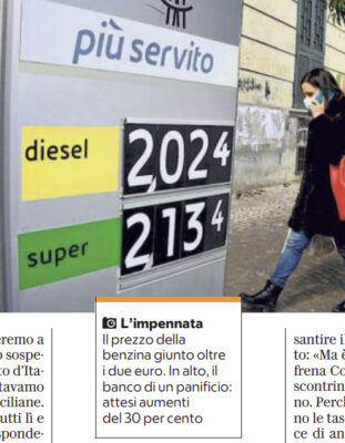 L'edizione odierna de "La Repubblica" si sofferma sul rincaro della Benzina e del grano. L'invasione dell’Ucraina sta facendo schizzare in...
