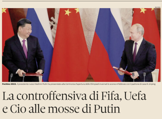 Il Sole 24 Ore: “La controffensiva di Fifa, Uefa e Cio alle mosse di Putin”