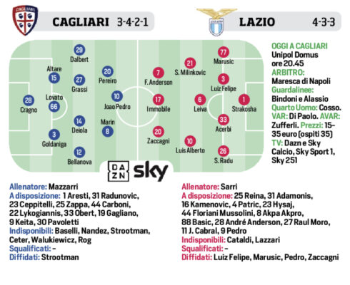 L'edizione odierna de "Il Corriere dello Sport" si sofferma sulla gara di oggi tra Cagliari e Lazio. Nessuno come Ciro....
