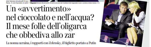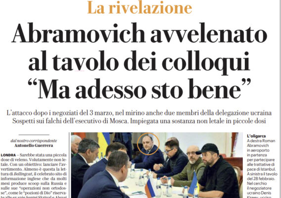 L'edizione odierna de "Il Corriere della Sera" si sofferma sulla questione relativa ad Abramovich e il suo avvelenamento. Chissà se...