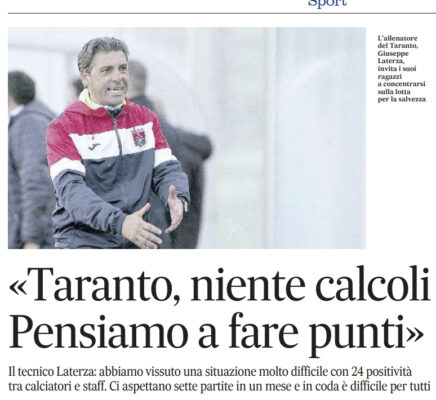 L'edizione odierna de "Il Quotidiano di Puglia" si sofferma sulle parole di Laterza in vista del match contro il Palermo....