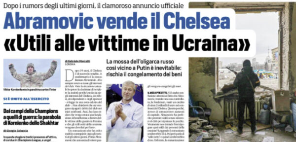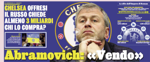 L'edizione odierna de "La Gazzetta dello Sport" si sofferma sul Chelsea in vendita. Le sanzioni economiche contro la Russia e...