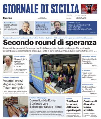 L'edizione odierna de "Il Giornale di Sicilia" si sofferma su vari temi in prima pagina. Un possibile cessate il fuoco...