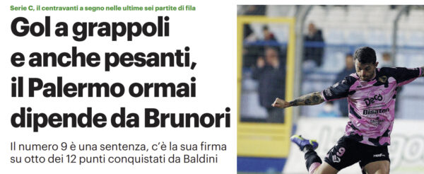 Gds: “Gol a grappoli e anche pesanti, il Palermo ormai dipende da Brunori”