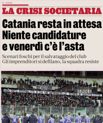 L'edizione odierna de "La Gazzetta dello Sport" si sofferma sulla situazione del Catania. Si prospetta uno scenario a tinte fosche...