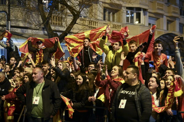 Diverse migliaia di persone festanti si sono radunate sulla piazza centrale di Skopje per accogliere la nazionale di calcio della...