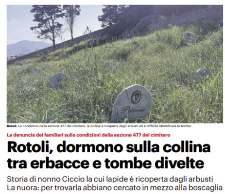 L'edizione odierna de "Il Giornale di Sicilia" si sofferma sull'emergenza Rotoli a Palermo. Dormono sulla collina. In mezzo alle erbacce...