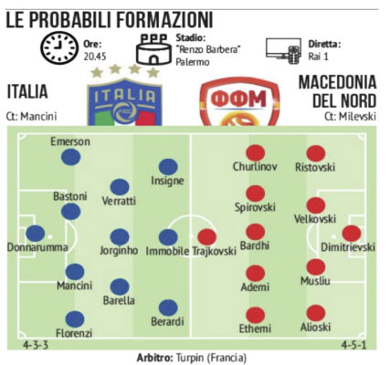 L'edizione odierna de "Il Giornale di Sicilia" si sofferma sulle probabile formazioni di Italia-Macedonia in programma questa sera. Mancini conta...