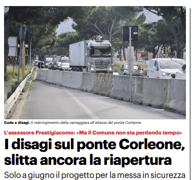 L'edizione odierna de "Il Giornale di Sicilia" si sofferma sui disagi sul Ponte Corleone. La mancanza di materie prime dovuta...