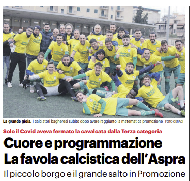 L'edizione odierna de "Il Giornale di Sicilia" si sofferma sulla favola calcistica dell'Aspra. Chi è piccolo, a suo modo può...