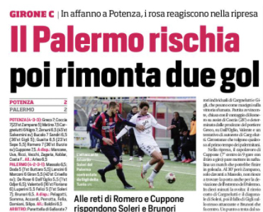 L'edizione odierna de "Il Giornale di Sicilia" si sofferma sulla gara pareggiata dal Palermo contro il Potenza. Edoardo Soleri firma...