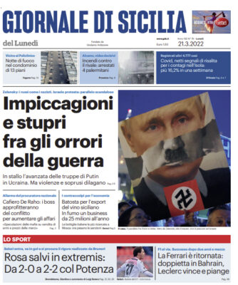 L'edizione odierna de "Il Giornale di Sicilia" si sofferma su vari temi in prima pagina. In stallo l’avanzata delle truppe...