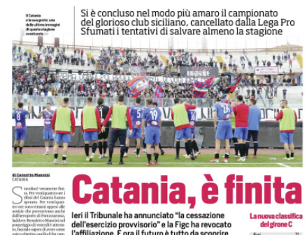 L'edizione odierna de "Il Corriere dello Sport" si sofferma sulla fine del Catania. Stavolta è veramente finita. Per ventiquattro ore...
