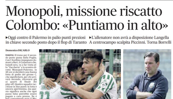 L'edizione odierna de "Il Quotidiano di Puglia" si sofferma sulla gara del Palermo contro il Monopoli, in programma oggi. Il...