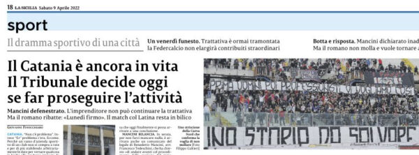 L'edizione odierna de "La Sicilia" si sofferma sulla situazione relativa al Catania appeso ad un filo. Un ramo d’azienda sportivo...