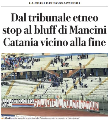 L'edizione odierna de "La Repubblica" si sofferma sul Tribunale di Catania che blocca il bluff di Mancini. La fine del...