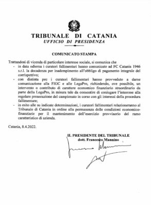 Caos Catania, Ghirelli conferma: «Se il Tribunale revoca l’esercizio provvisorio, il club verrà escluso dalla C»