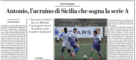 L'edizione odierna de "La Repubblica" si sofferma su Antonio, l'ucraino in Sicilia che sogna la serie A. La Sicilia la...