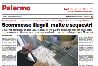 L’edizione odierna de “Il Giornale di Sicilia” si sofferma sulla vicenda che riguarda delle scommesse illegali a Palermo. Dall’agenzia...