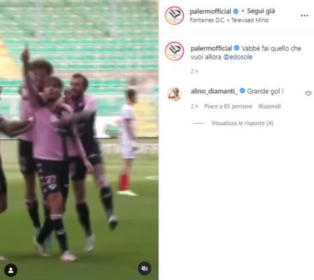 Attraverso Instagram il Palermo ha pubblicato la clip dell'eurogol da centrocampo di Edoardo Soleri nel match vinto contro il Picerno....