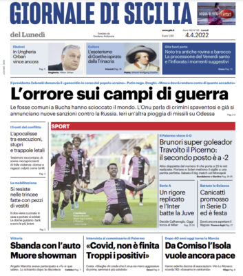 L'edizione odierna de "Il Giornale di Sicilia" si sofferma su vari temi in prima pagina. Le fosse comuni a Bucha...