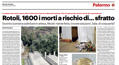 L'edizione odierna de "Il Giornale di Sicilia" si sofferma sulla situazione relativa ai Rotoli di Palermo con molte salme a...